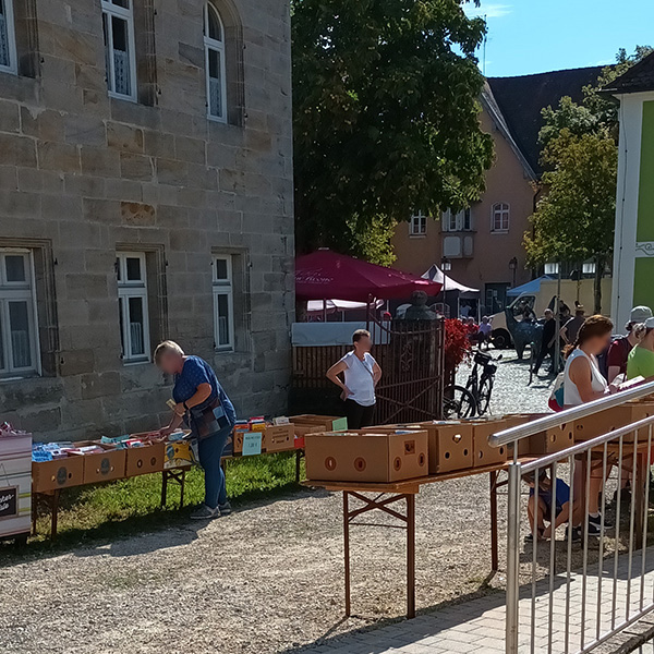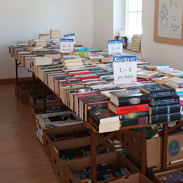 Bei herrlichem Wetter fanden sich im Rahmen des Michaelimarktes in Thalmässing wieder viele Besucher bei uns ein. Vor und in unserer Bücherei hatten sie eine Vielzahl an Büchern zur Auswahl, welche wir regelmäßig aus unserem Bestand aussondern. Viele von diesen „Schätzchen“ fanden Abnehmer*innen. Aus dem Erlös werden wir wieder neue Bücher anschaffen, sodass unser Bestand immer auf dem aktuellen Stand bleibt.